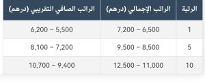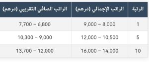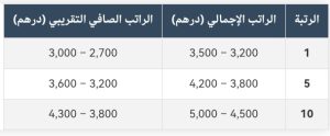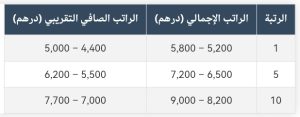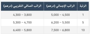 ملاحظة: هذه الأرقام تقريبية وقد تختلف حسب التعويضات الإضافية والاقتطاعات (الضرائب، التقاعد، التأمين).